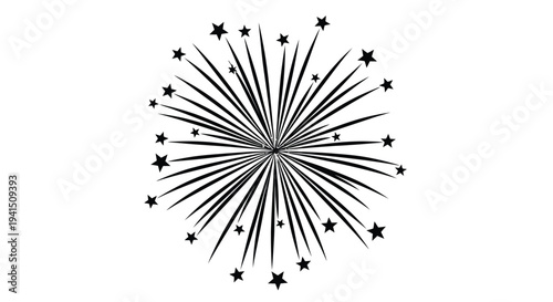 Obraz premium Simple black and white illustration of a bursting firework with radiating star shapes