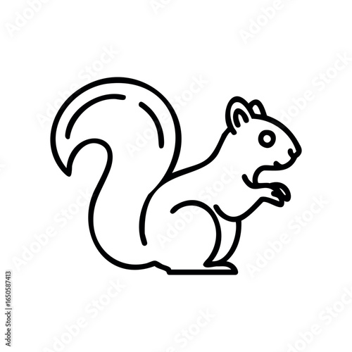 Fototapeta premium Simple black and white illustration of a squirrel with a curved tail