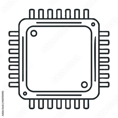 Fototapeta premium Simple black and white illustrative microchip with pin connectors. Vector...