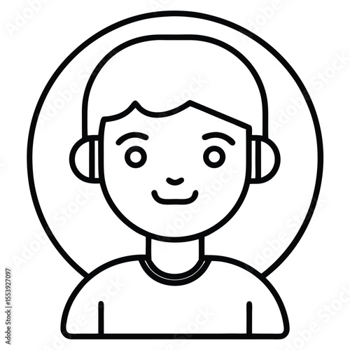 Obraz premium Simple black and white line art icon representing online assistance and a friendly avatar
