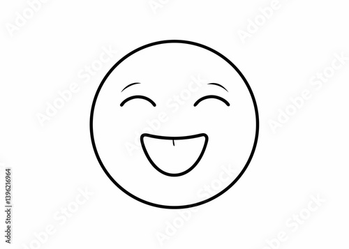 © Rakib, Fototapeta premium Simple Black And White Line Drawing Circular Smiley