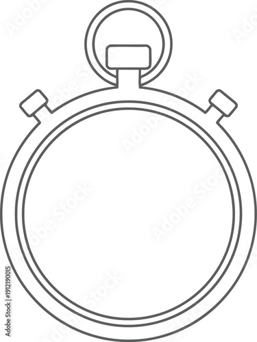 © Mashrafi, Fototapeta premium Simple black and white line drawing of a classic stopwatch icon with a top ring and two side buttons.