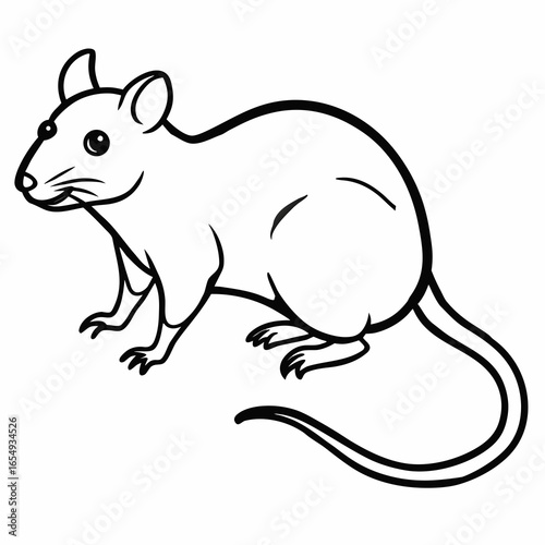 Obraz premium Simple black and white line drawing of a mouse isolated on white background