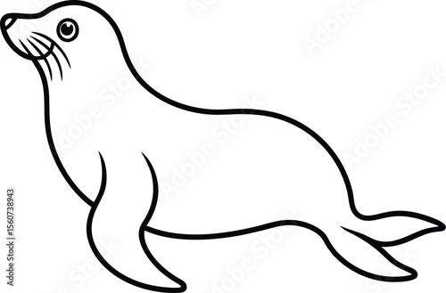 © MdHabibur, Fototapeta premium Simple black and white line drawing of a playful seal vector illustration.