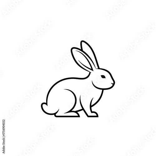 © sanatun, Obraz premium Simple black and white line drawing of a rabbit in a sitting position, facing right.