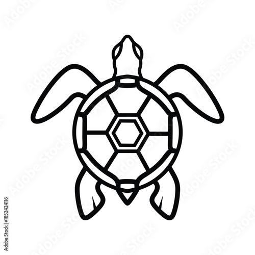 © Jahidul, Fototapeta premium Simple black and white line drawing of a turtle from above