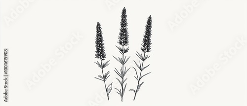 © nurman, Naklejka premium Simple black and white line drawing of three lavender flowers.