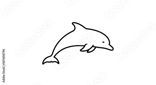 Fototapeta premium Simple Black and White Outline of a Jumping Dolphin.