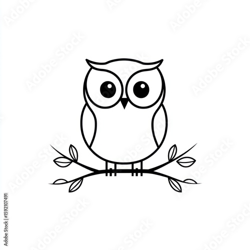 © CUNGKRING, Fototapeta premium Simple black and white owl on branch