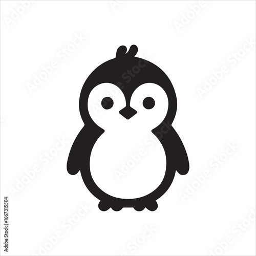 © Dani, Obraz premium Simple Black and White Penguin Illustration with Unique Head Detail.