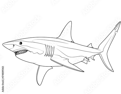 © Kusmi, Fototapeta premium Simple black and white shark outline drawing