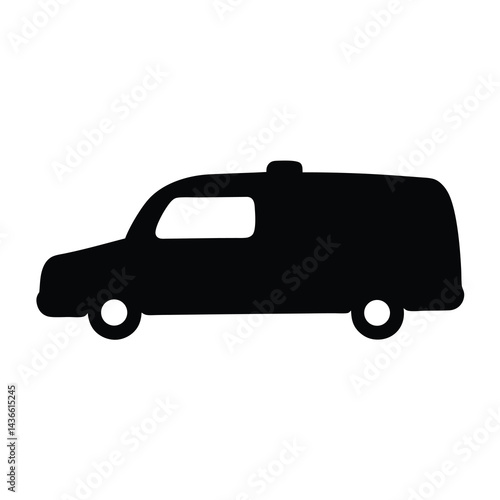 Fototapeta premium Simple black and white silhouette illustration of a delivery van or ambulance