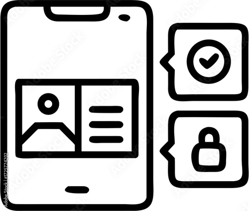 © Saifurrehman, Fototapeta premium Simple Black and White Smartphone Icon with Profile and Security Features.