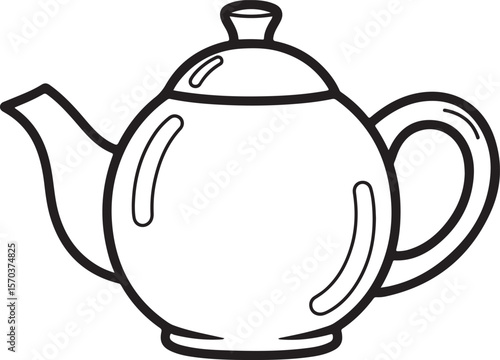 Obraz premium Simple Black and White Teapot Illustration, Classic Kitchenware Outline for...