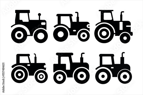 © md manik hossain, Fototapeta premium Simple Black and White Tractor Icons Set on a white background
