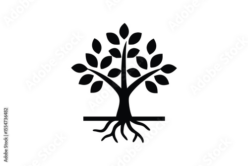 Fototapeta premium Simple Black and White Tree Silhouette with Roots