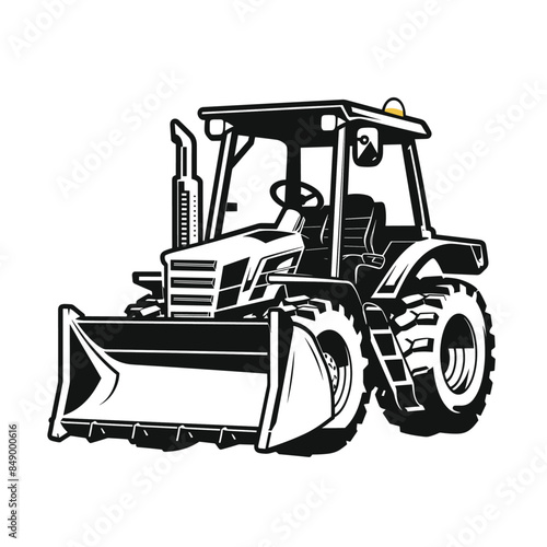 © Suhardi, Naklejka premium Simple black and white vector graphic of an electric tractor, with thick lines isolated
