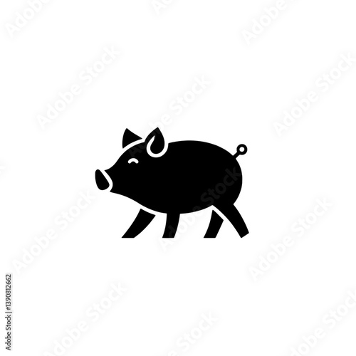 Obraz premium Simple black and white vector icon of a pig designed with minimalist style and negative space