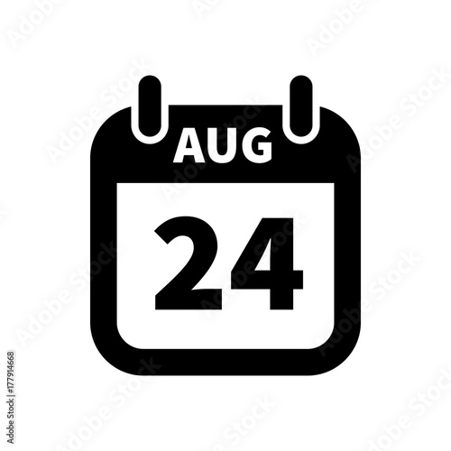 Fototapeta premium Simple black calendar icon with 24 august date isolated on white