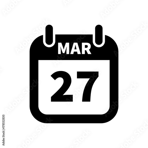 © EvgeniyBobrov, Fototapeta premium Simple black calendar icon with 27 march date isolated on white