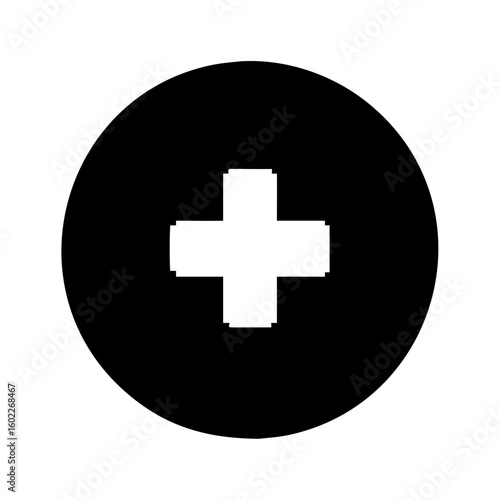 Fototapeta premium Simple black circle with a white plus sign inside design graphic