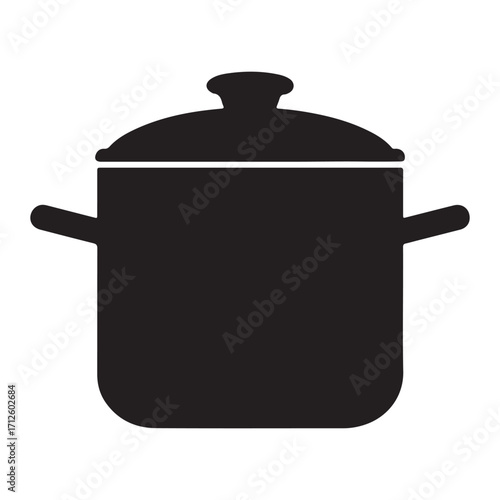 Obraz premium Simple Black Cooking Pot Illustration with Lid and Handles for Culinary Concepts and Restaurant Graphics Design Element