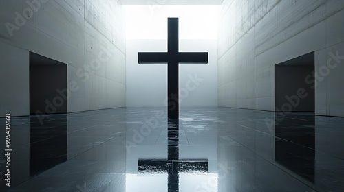 Naklejka premium Simple black cross at the center of a white space, embodying a minimalist...