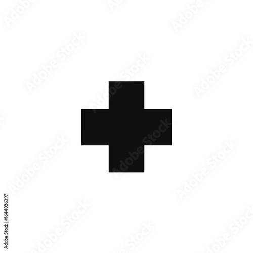 Fototapeta premium Simple black cross icon, signifying care and aid.