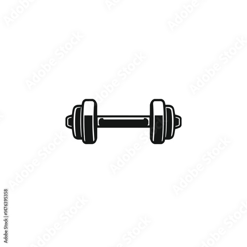 © Roxxxxxxxxx, Fototapeta premium Simple Black Dumbbell Icon Fitness Gym Weightlifting Exercise Strength Training Workout Graphic Design Element Silhouette Image Vector Illustration Isolated on White Background body pump gain sport