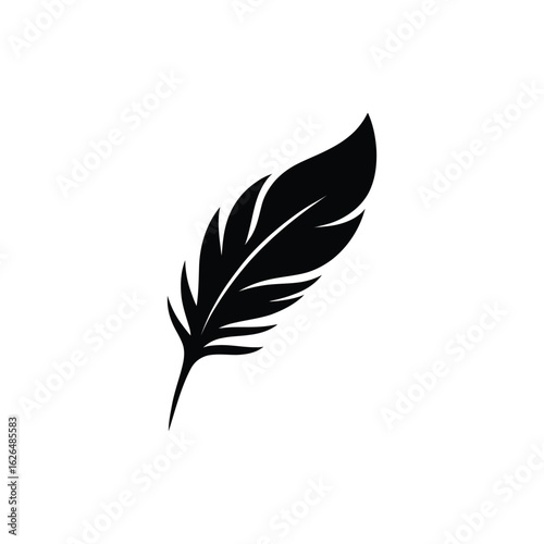 Obraz premium Simple black feather silhouette on white background