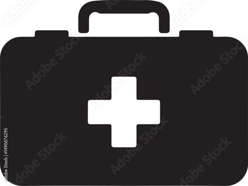 Obraz premium Simple Black First Aid Kit Icon Graphic