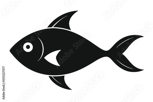 © Gulnaz, Obraz premium Simple Black Fish Icon with White Eye and Fin Details on Isolated White Background
