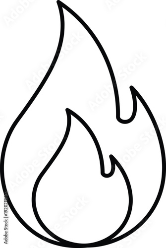 Fototapeta premium Simple black flame icon on a white background, symbolizing fire and energy.