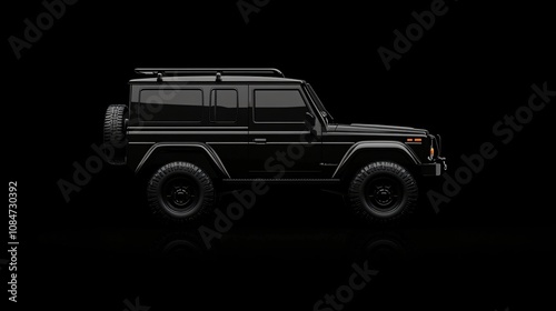 © Sergiy, Obraz premium Simple black flat icon of a car highlighting a stylish and powerful vehicle design at night