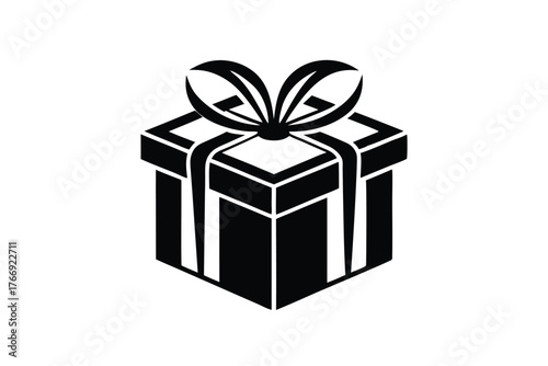 © pipp99, Obraz premium Simple black gift box icon with ribbon presents a minimalist silhouette style