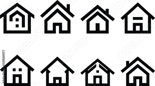 © Akash Mondal, Fototapeta premium Simple Black Line Art House Illustrations