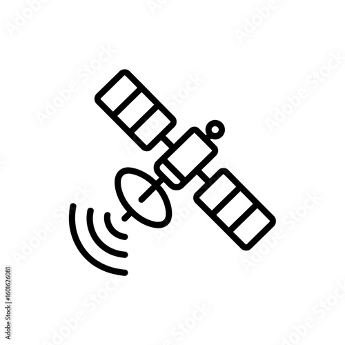 © MstSamima, Obraz premium Simple black line art icon of a satellite transmitting signals