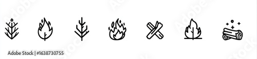 Obraz premium Simple black line art icons depicting nature elements related to fire