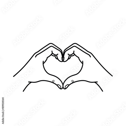 Fototapeta premium Simple black line art illustration of two hands forming a classic heart shape symbol