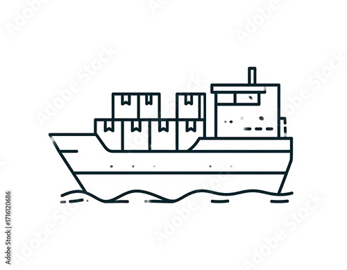 © Weduss, Fototapeta premium Simple black-line illustration of a cargo ship