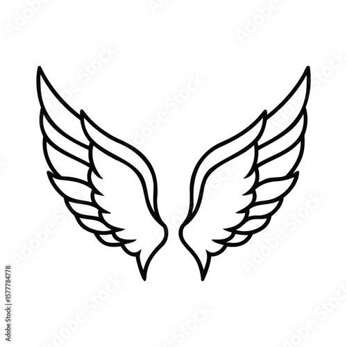 Fototapeta premium Simple black outline of a pair of majestic angel wings spread wide