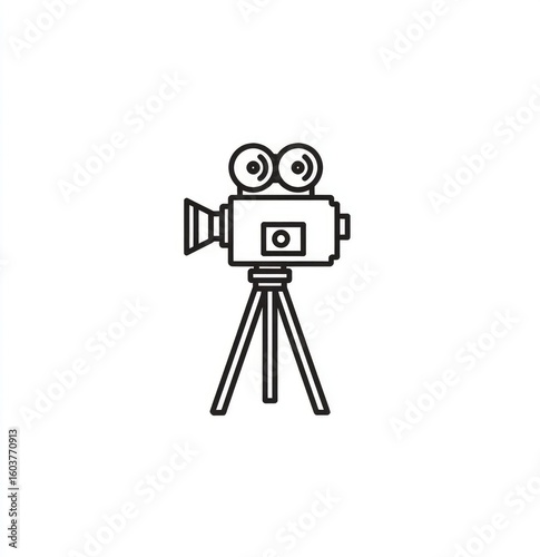 Obraz premium Simple, black outline of a vintage movie camera on a tripod