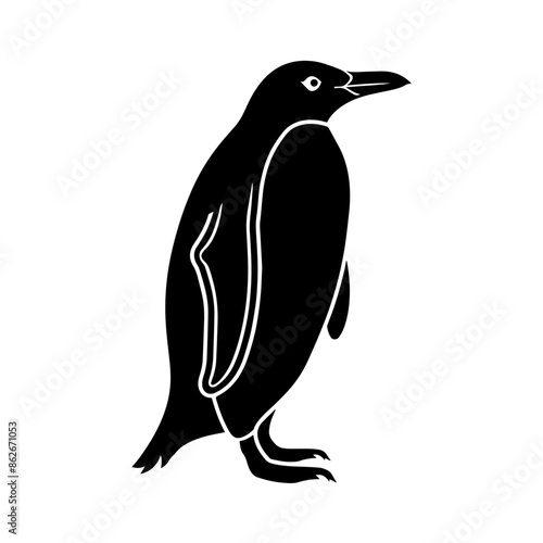 © Raj, Naklejka premium simple black penguin silhouette on white background