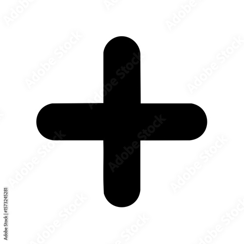 Fototapeta premium Simple Black Plus Sign Icon on White Background, Addition Symbol, Medical Cross shape.