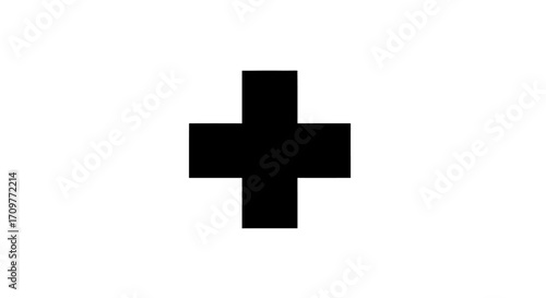Fototapeta premium Simple black plus sign symbol on a clean white background, representing...