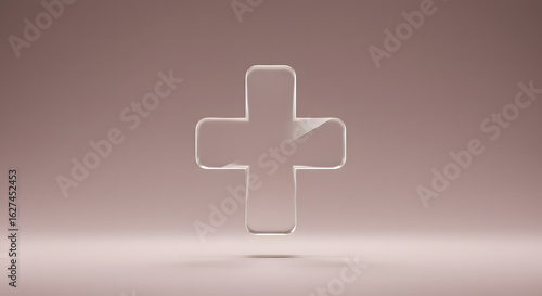 © azizah, Obraz premium Simple black plus sign with drop shadow on off-white background.