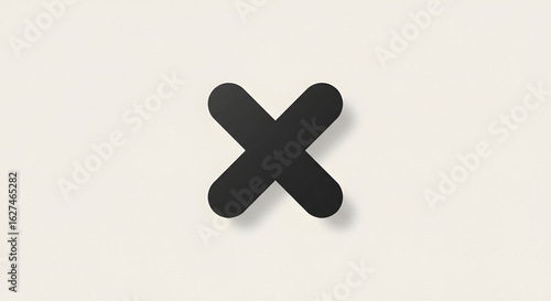 Obraz premium Simple black plus sign with drop shadow on off-white background.