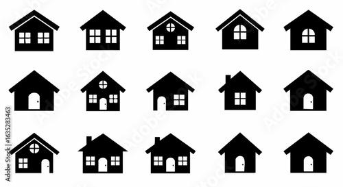 © zhefinartz, Fototapeta premium Simple black silhouette houses collection