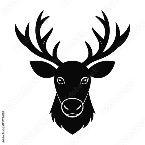 © Borizzz, Naklejka premium Simple Black Silhouette Icon of Moose Face – Minimal Vector Design on White Background
