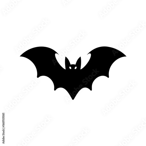 Fototapeta premium Simple black silhouette of a bat with outstretched wings on white